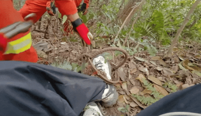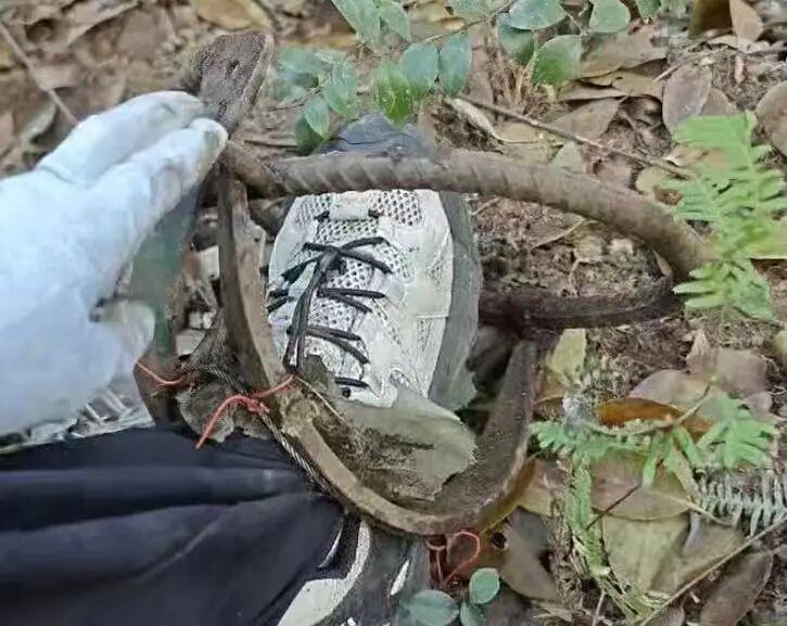 须眉脚被野猪夹夹住。图源:浙江消防